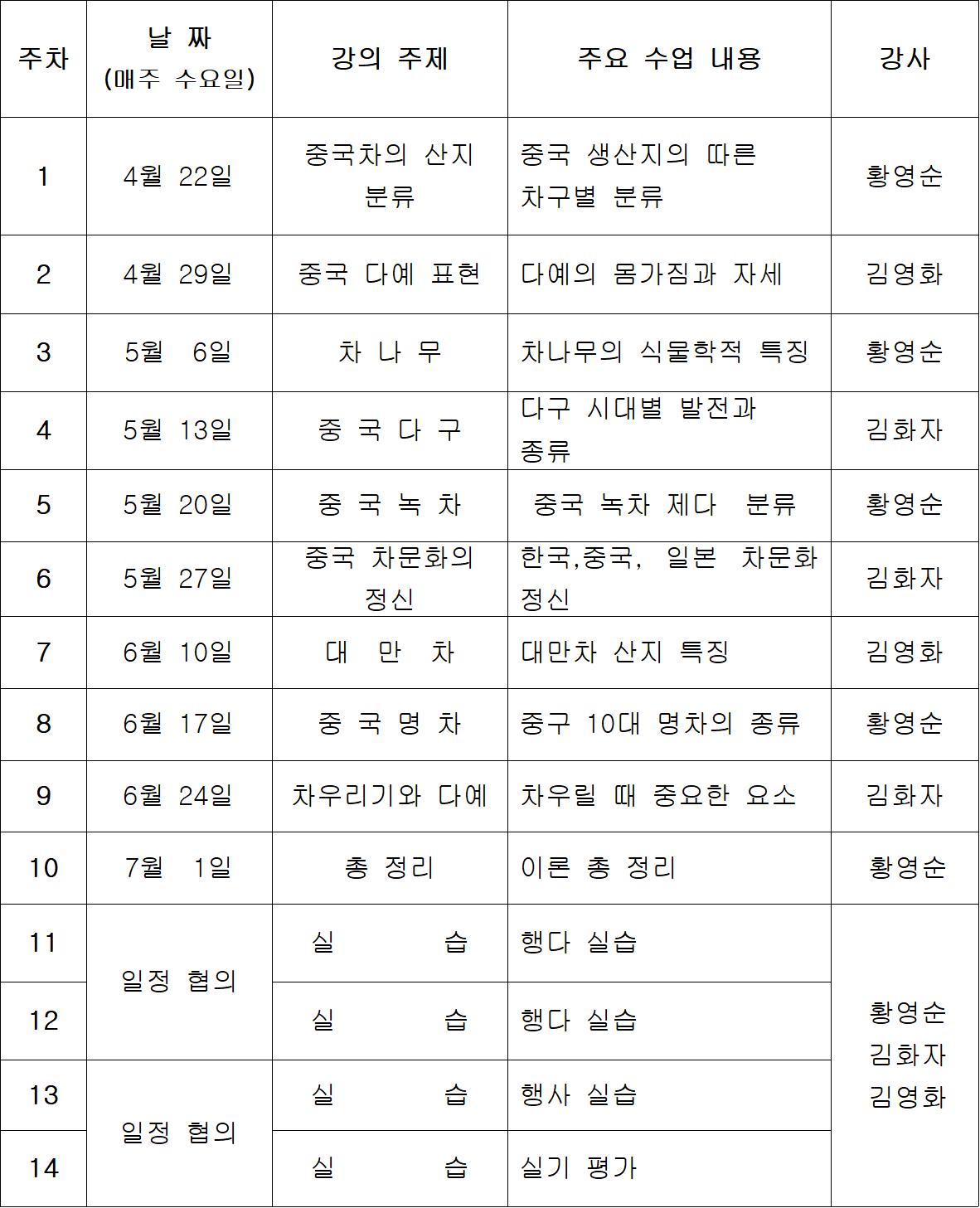 - 강사 : 황영순, 김화자, 김영화 원장(로테이션 수업)